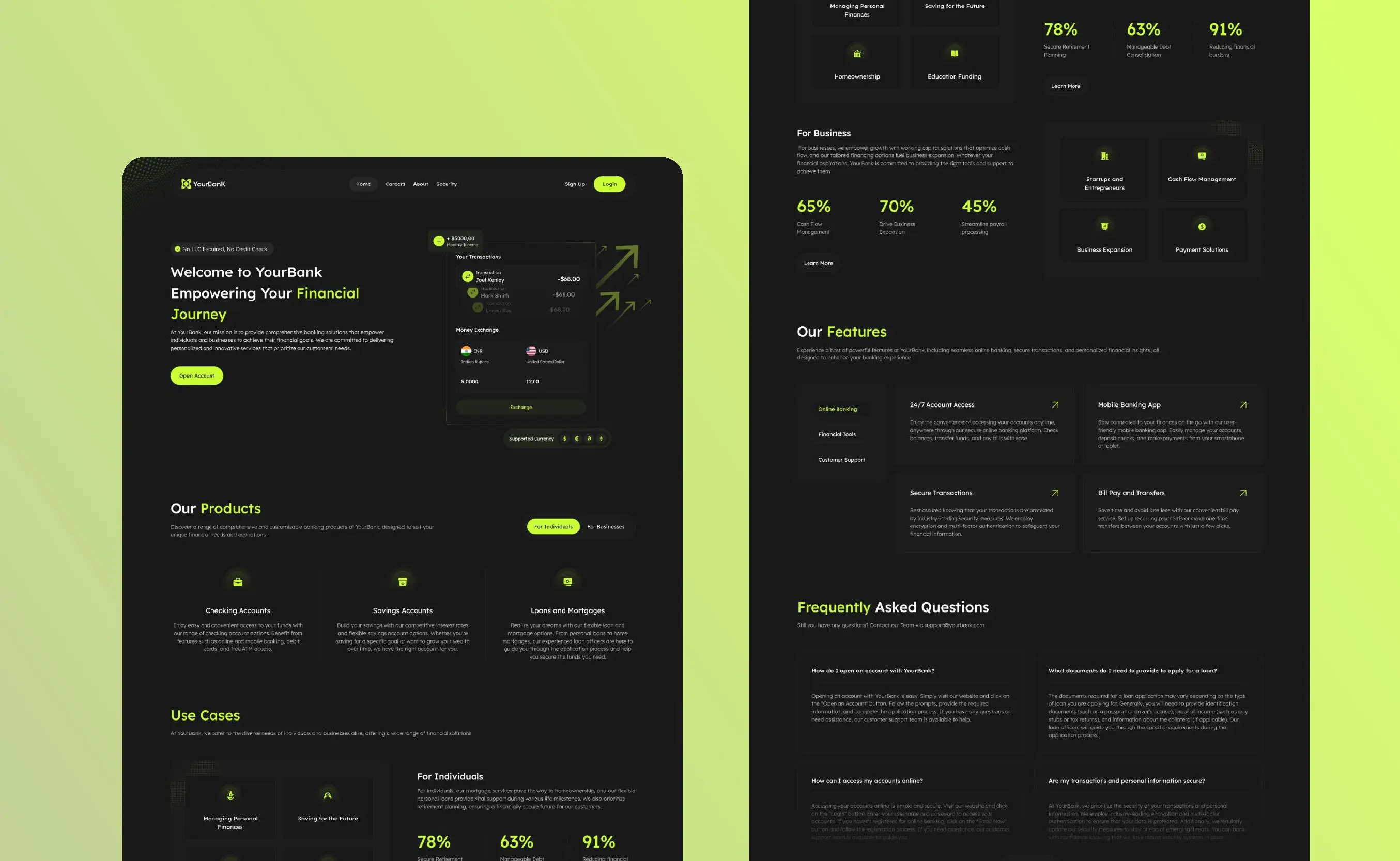 A sleek and modern website design for YourBank, offering comprehensive financial solutions and personalized banking experiences.