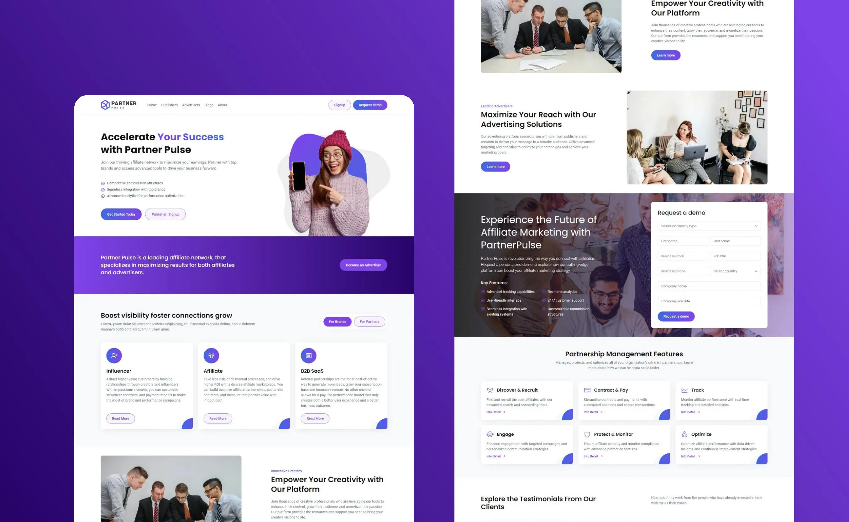 PartnerPulse is a dynamic affiliate network platform designed to connect businesses with top-performing affiliates, driving growth and maximizing revenue through effective partnerships.