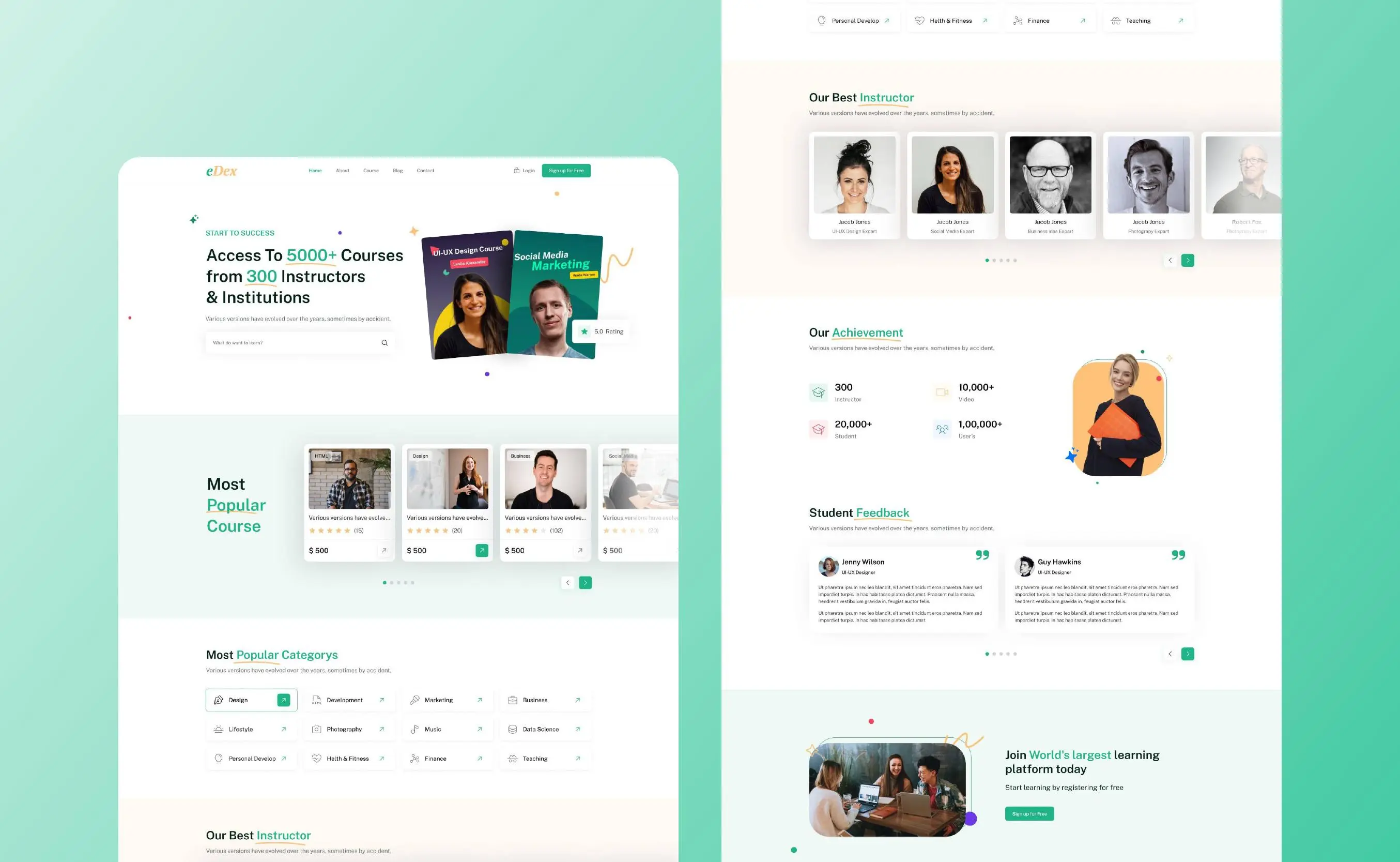 Modern and intuitive landing page for an online learning platform with access to thousands of courses.
